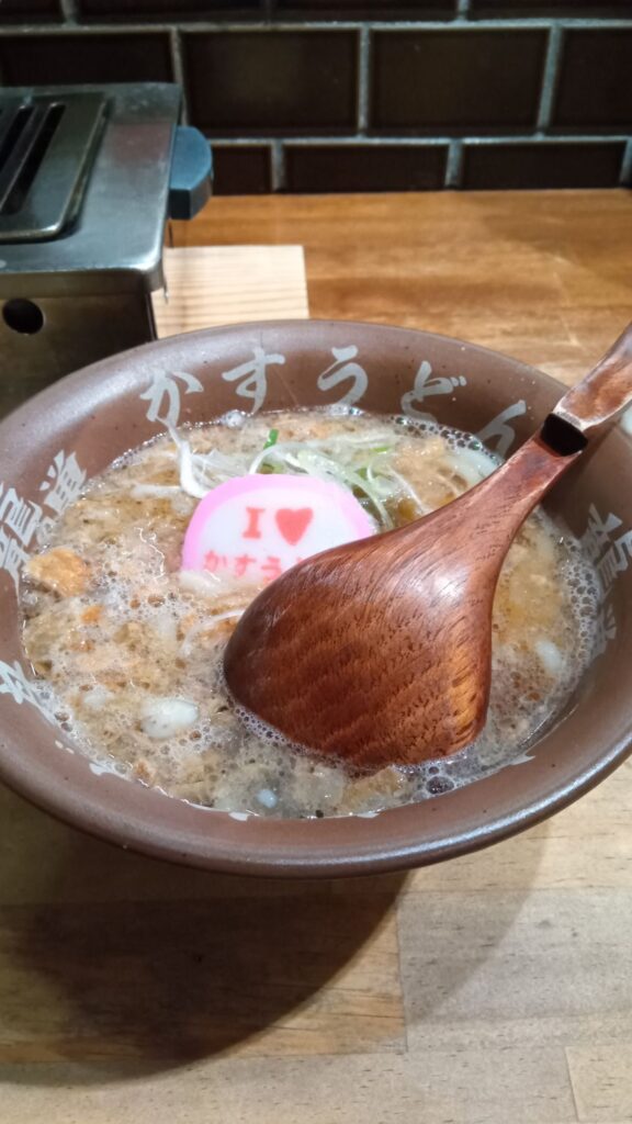 凄い美味しいって事前情報でハードルが上がりまくったかすうどん、普通に美味しかったです。