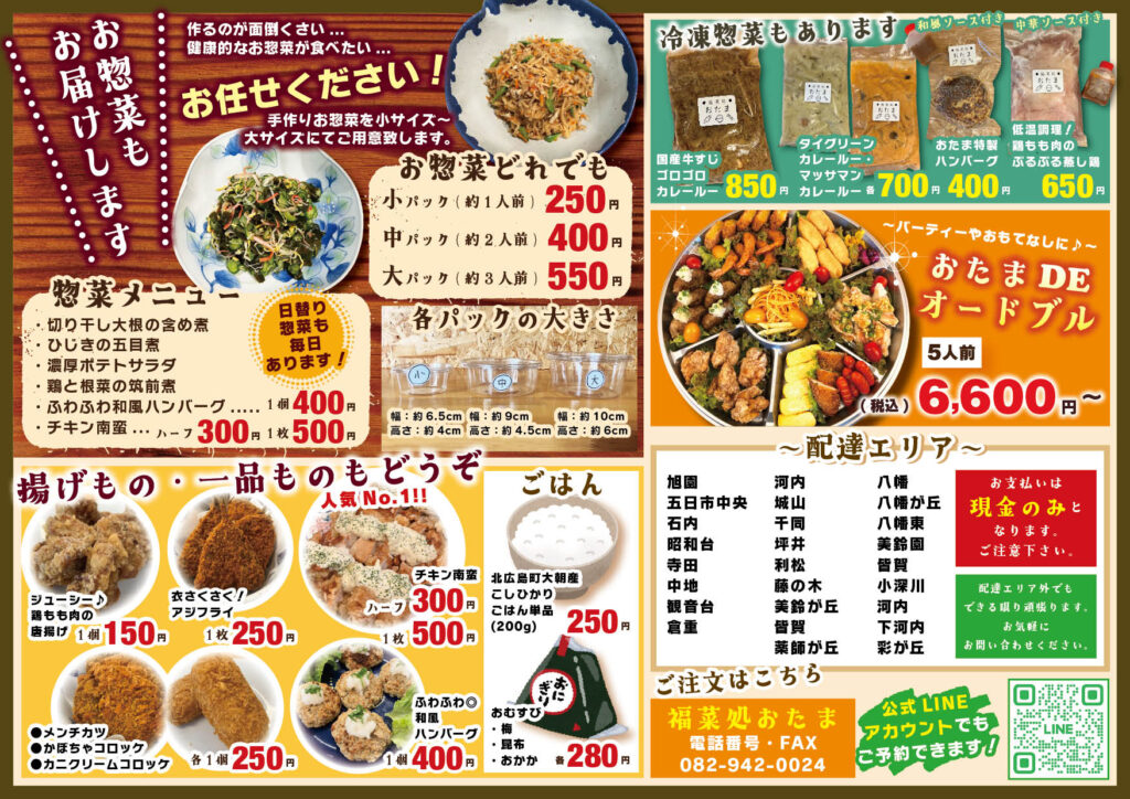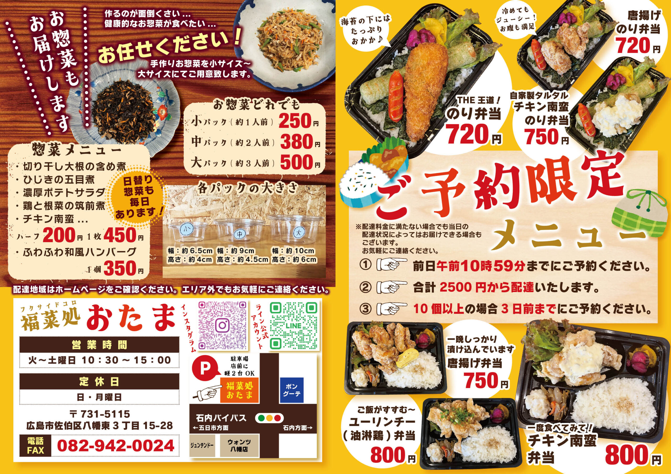 筑前煮、切り干し大根の含め煮、ポテトサラダなど、食べ親しんだおかずをご用意しております。その他に3種類ほど日替わり惣菜もお作りしています。惣菜ショーケースのどれでも!一律のお値段です。※チキン南蛮、ハンバーグ、焼魚を除く